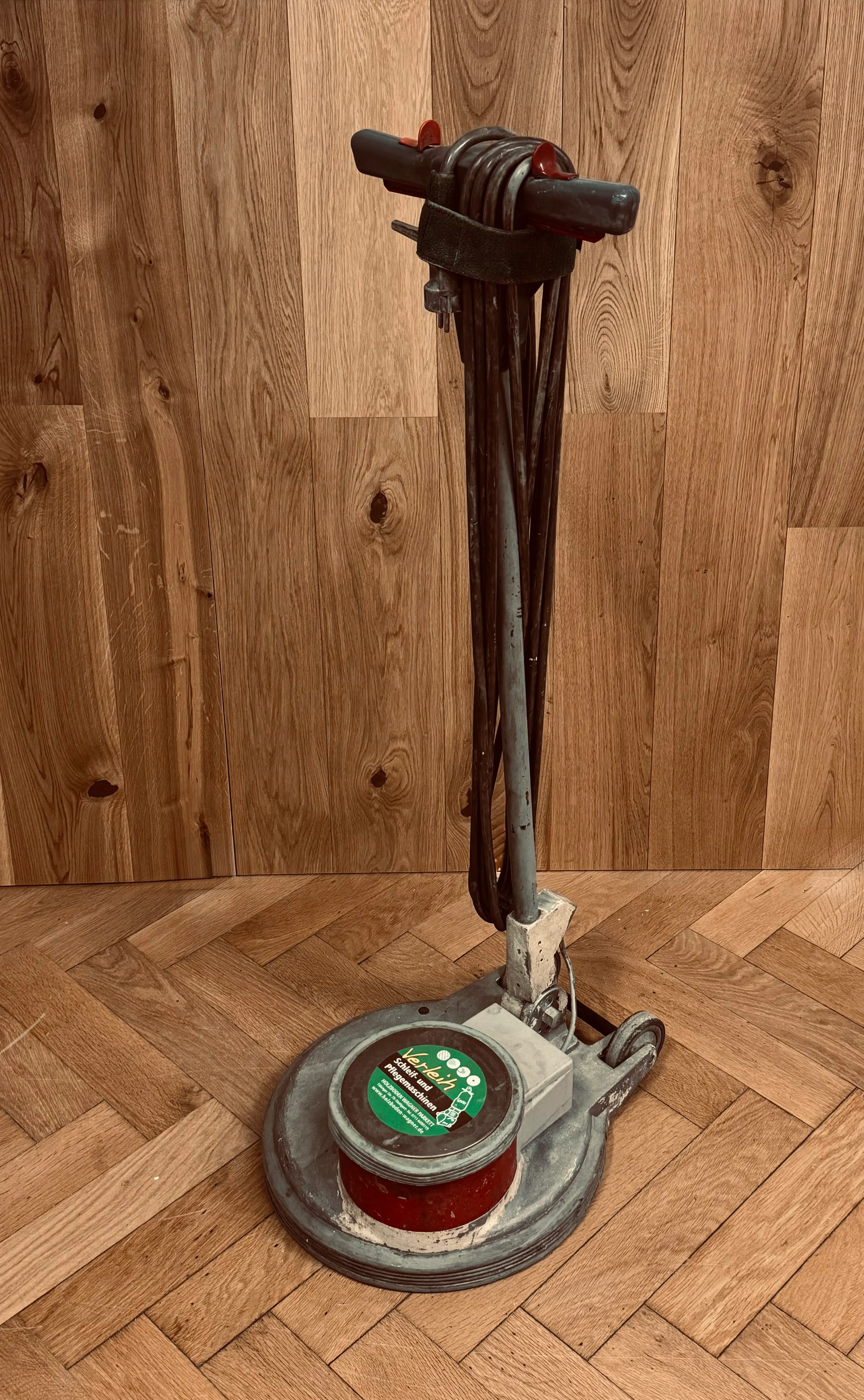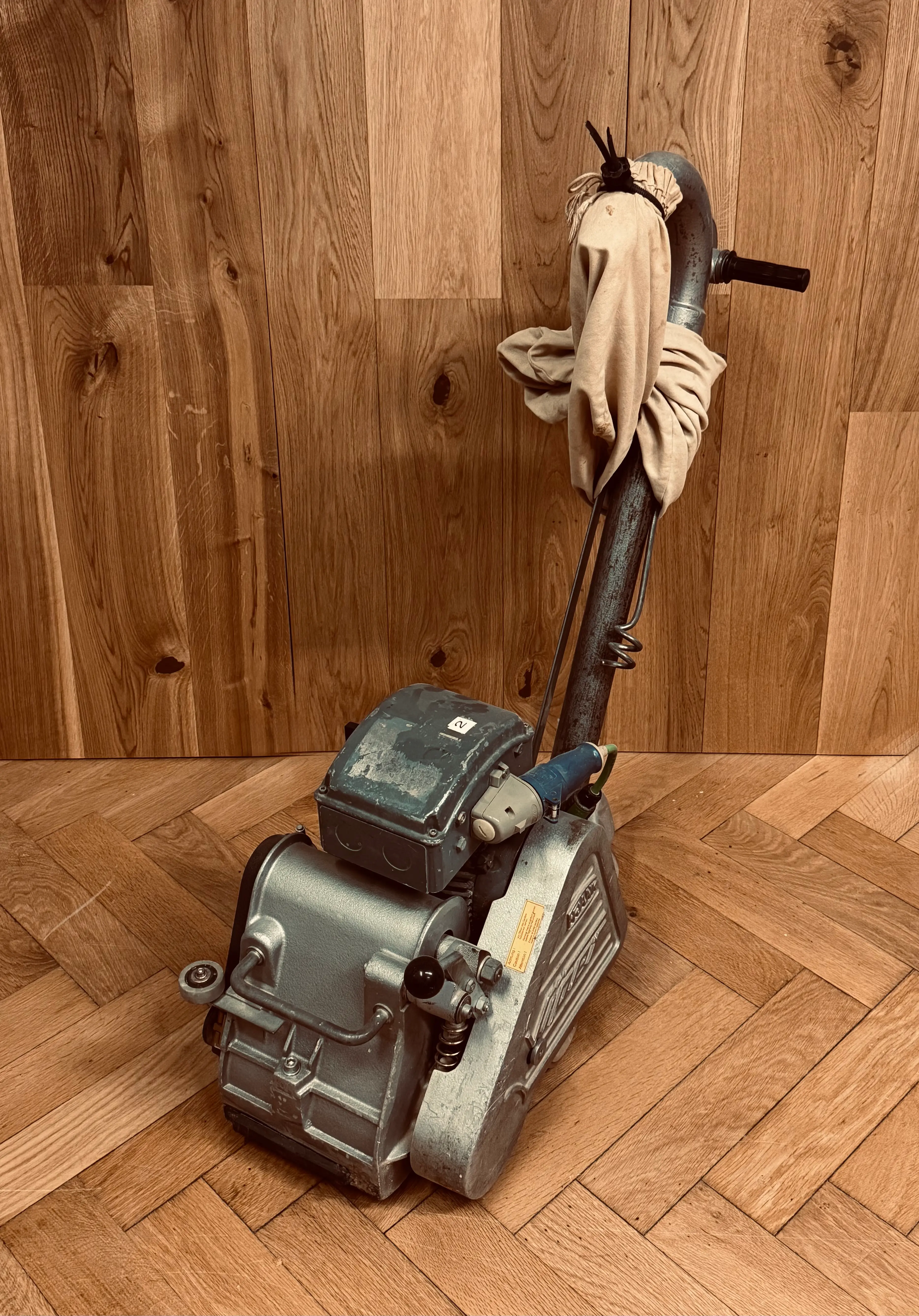 Mit der großen Flächenschleifmaschine / Bandschleifmaschine (Hummel) werden Flächen größer als 30m² geschliffen.
