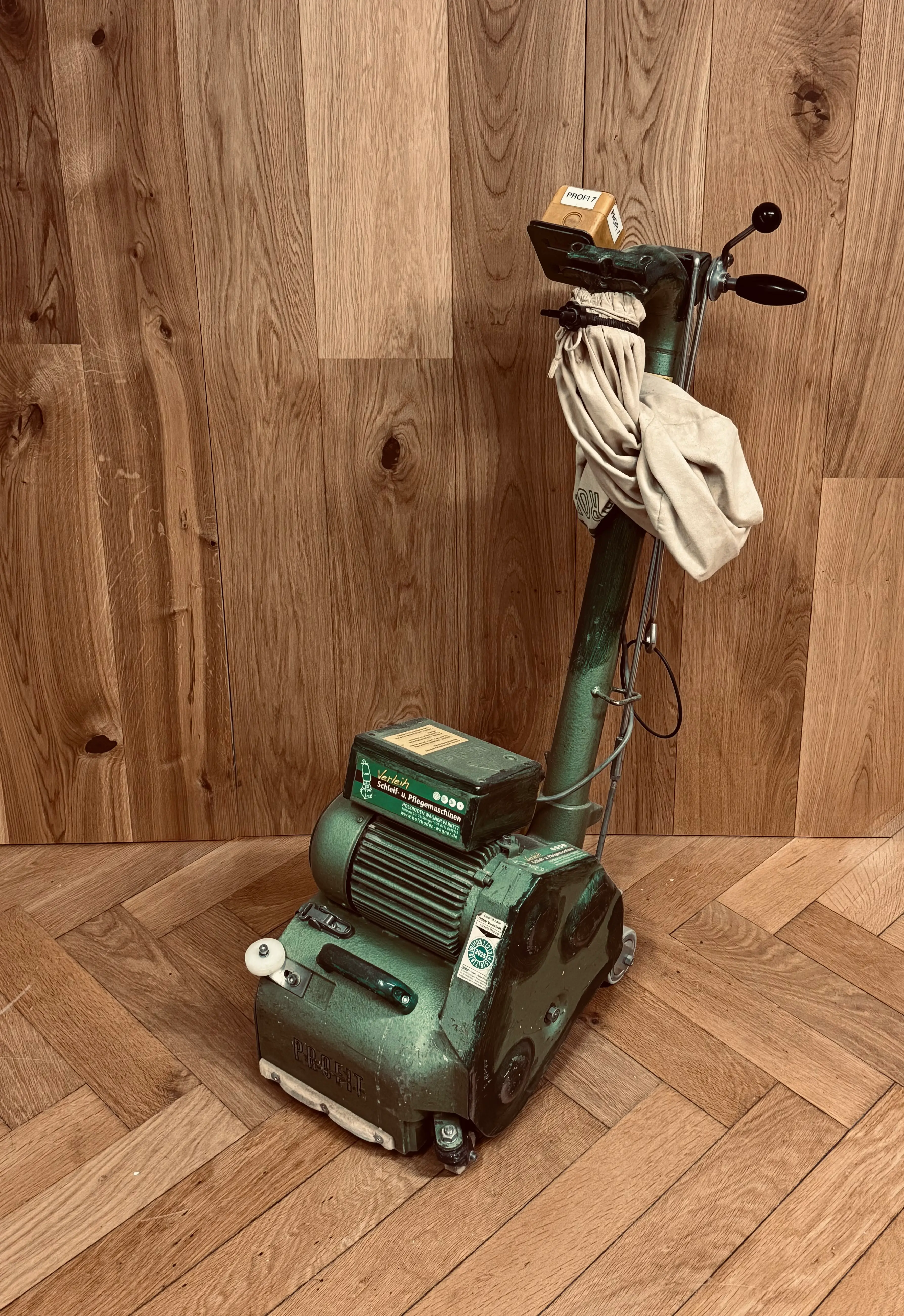 Mit der kleinen Flächenschleifmaschine (Profi) werden Flächen bis ca. 30m² geschliffen.