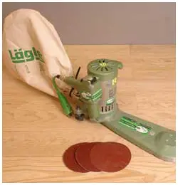 Das Gerät hat eine hohe Abtragleistung und kann durch den höhenverstellbaren Führungsbügel kniend oder stehend bedient werden. Einfacher Wechsel der Schleifscheiben durch Haftklett. Die integrierte Staubabsaugung befördert den anfallenden Holzstaub direkt in einen dafür vorgesehenen Staubsack der durch wenige Handgriffe gelöst und geleert werden kann.